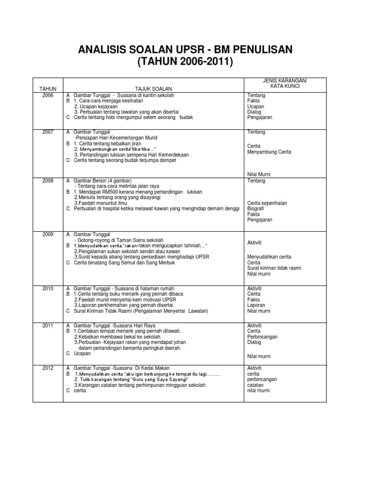 . Koleksi bank soalan sebenar UPSR tahun-tahun lepasBerikut adalah kompilasi kertas soalan sebenar peperiksaan Ujian Pencapaian sekolah Rendah UPSR tahun-tahun lepas 2016 2017 2018 dan 2019 bagi semua subjek - Bahasa Melayu BM Bahasa Inggeris BI Matematik dan Sains. Ramai murid yang tidak menguasai Bahasa Melayu gagal mendapat gred lulus dalam kertas peperiksaan Bahasa Melayu Penulisan. Fungsi Ubat Sapu Voren.